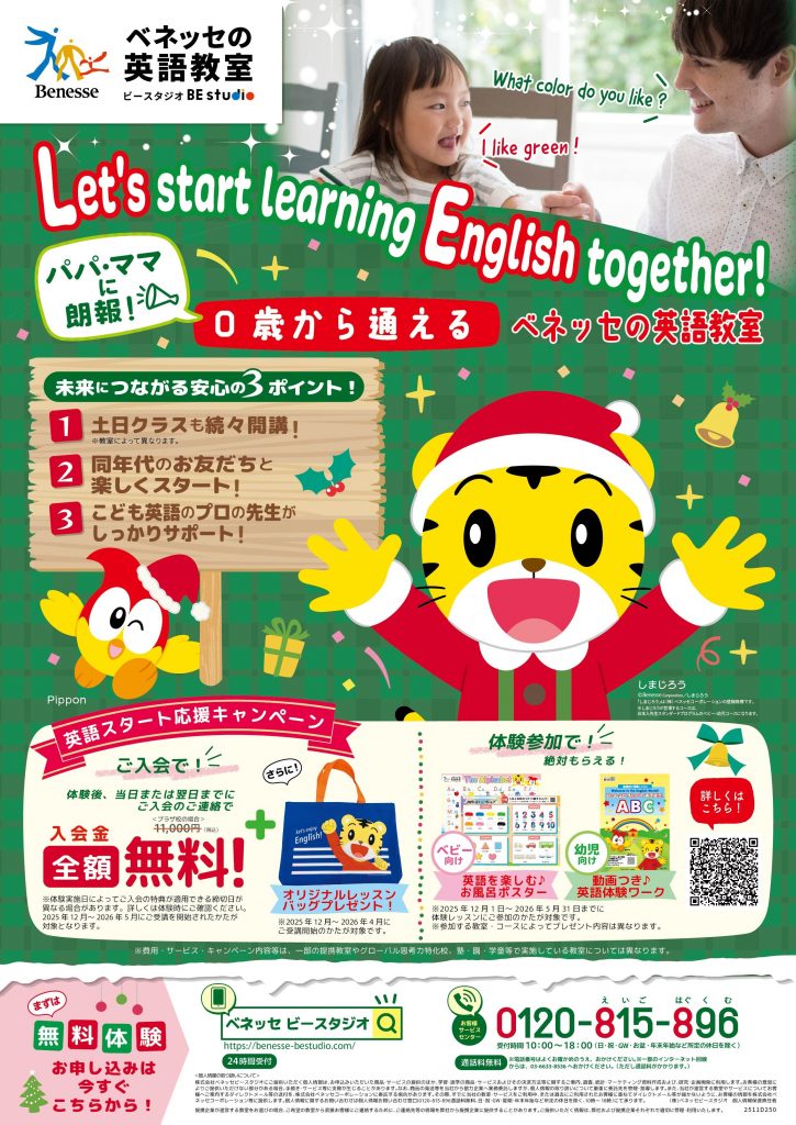英語スタート応援キャンペーン 英語スタート応援キャンペーン 新しいキャンペーンが始まりました! ベビーさんから大人までビースタジオでは様々なコースをご用意しています。 英語を始めようかと迷われているなら、この時期からのご体験と4月までのご受講開始でお得に始められますよ。 無料体験のお申込みはお教室または0120-815-896まで。