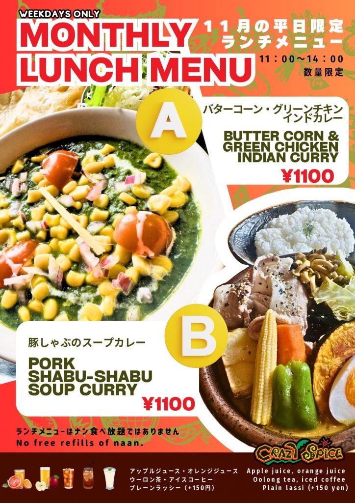 【平日限定】❤️11月の平日限定ランチメニュー❤️