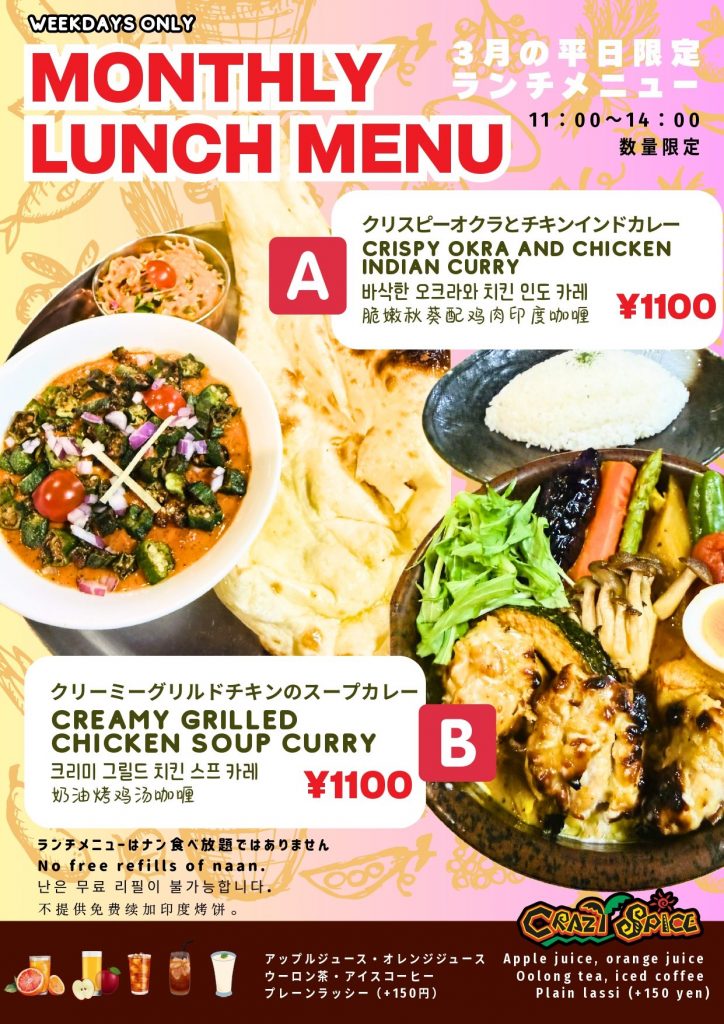 ※ランチメニューにナン食べ放題はつきません。