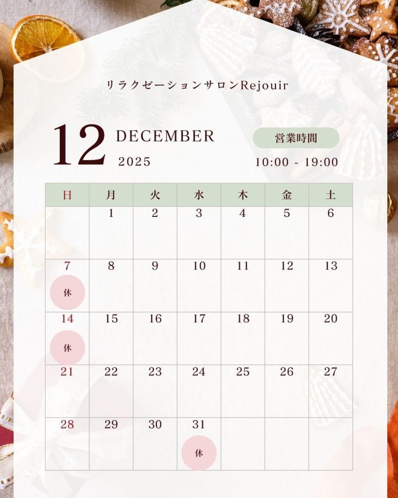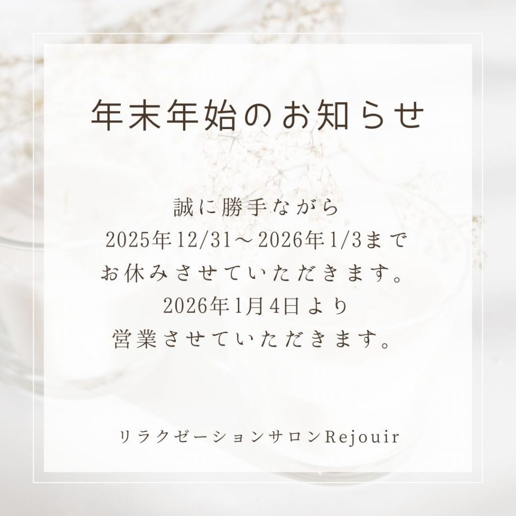 2025.12/31(水)〜2026.1/3(土)まで休業させていただきます。